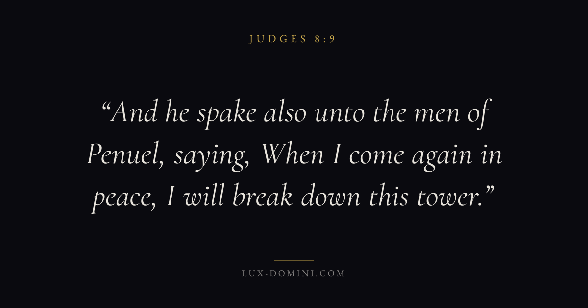 And he spake also unto the men of Penuel, saying, When I come again in peace, I will break down this tower.
