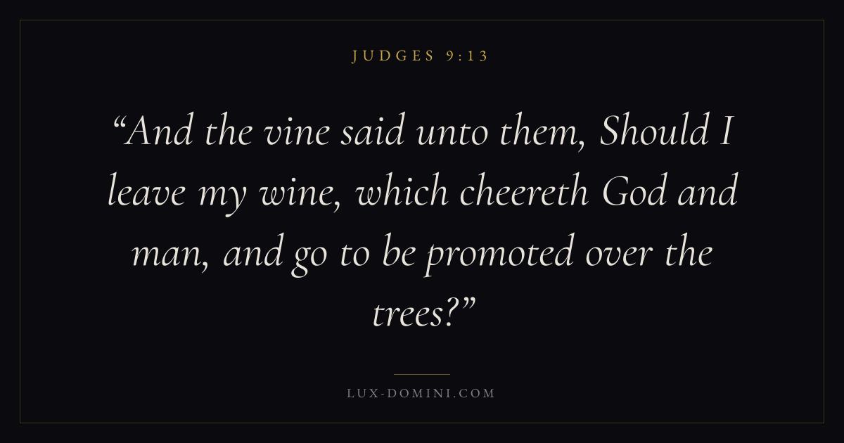 And the vine said unto them, Should I leave my wine, which cheereth God and man, and go to be promoted over the trees?