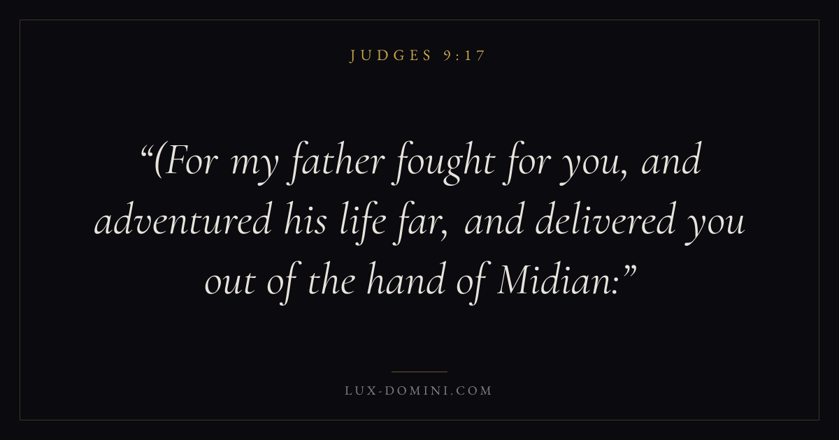 (For my father fought for you, and adventured his life far, and delivered you out of the hand of Midian: