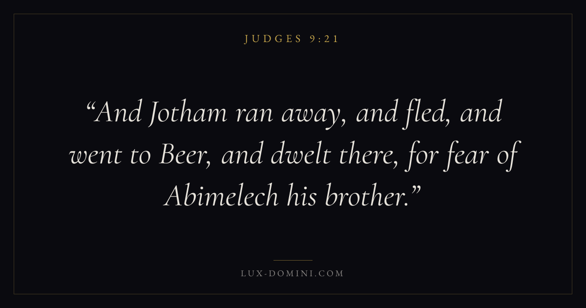 And Jotham ran away, and fled, and went to Beer, and dwelt there, for fear of Abimelech his brother.
