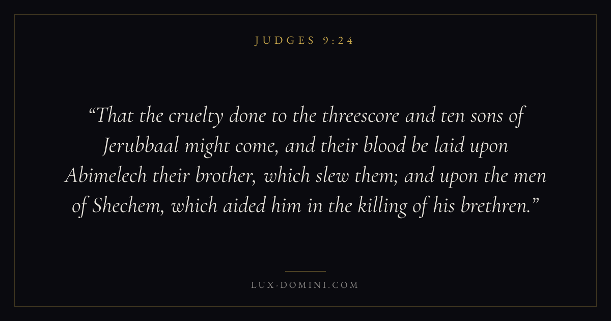 That the cruelty done to the threescore and ten sons of Jerubbaal might come, and their blood be laid upon Abimelech their brother, which slew them; and upon the men of Shechem, which aided him in the killing of his brethren.