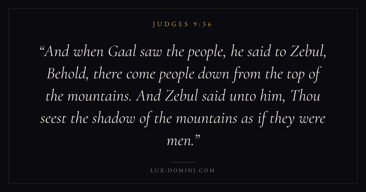 And when Gaal saw the people, he said to Zebul, Behold, there come people down from the top of the mountains. And Zebul said unto him, Thou seest the shadow of the mountains as if they were men.
