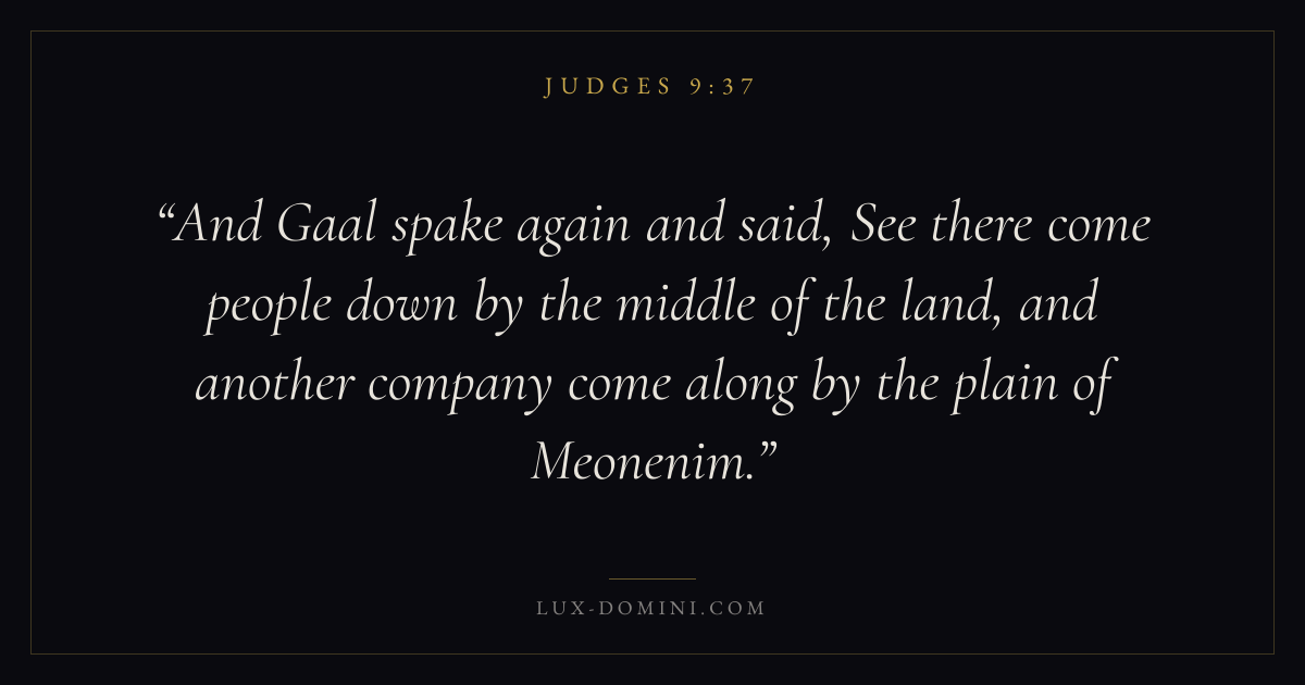 And Gaal spake again and said, See there come people down by the middle of the land, and another company come along by the plain of Meonenim.