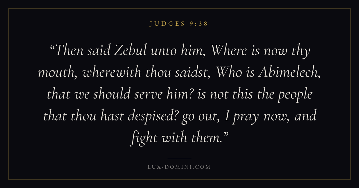 Then said Zebul unto him, Where is now thy mouth, wherewith thou saidst, Who is Abimelech, that we should serve him? is not this the people that thou hast despised? go out, I pray now, and fight with them.
