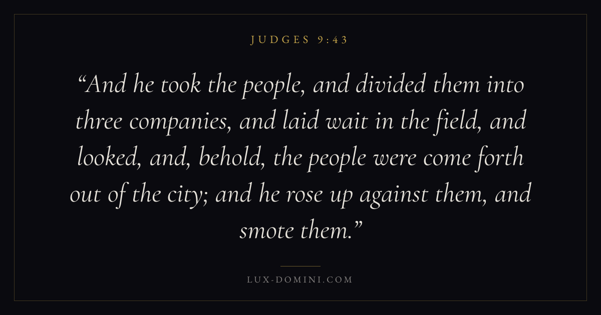 And he took the people, and divided them into three companies, and laid wait in the field, and looked, and, behold, the people were come forth out of the city; and he rose up against them, and smote them.
