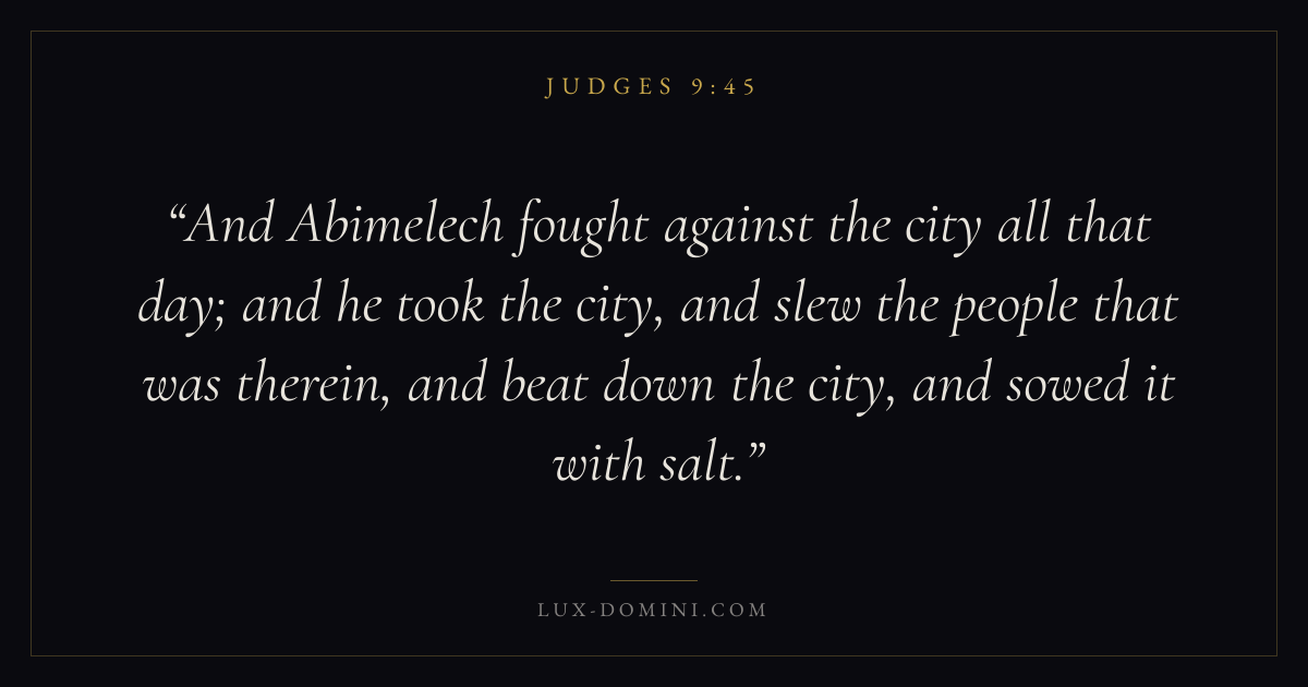And Abimelech fought against the city all that day; and he took the city, and slew the people that was therein, and beat down the city, and sowed it with salt.