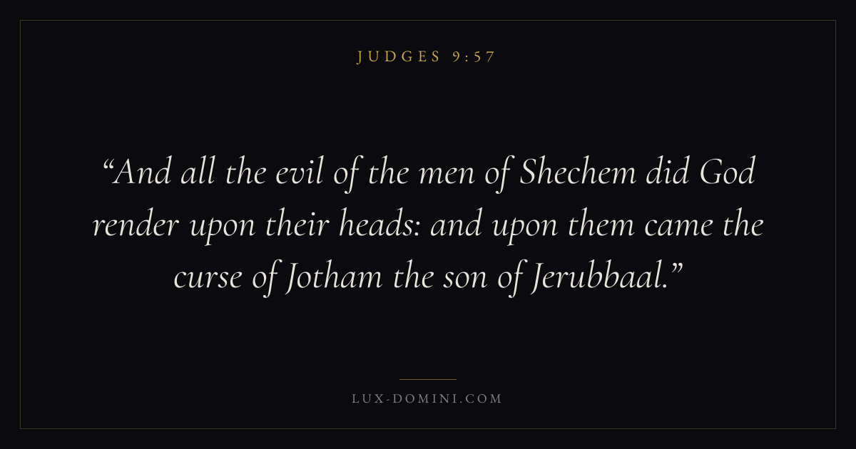 And all the evil of the men of Shechem did God render upon their heads: and upon them came the curse of Jotham the son of Jerubbaal.