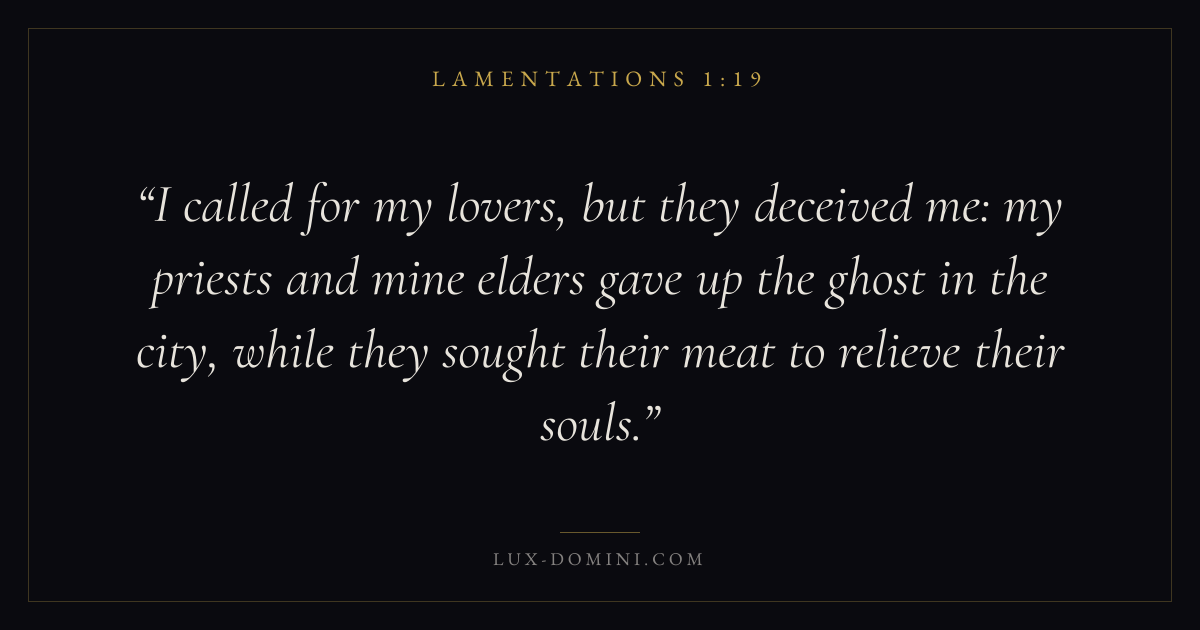 I called for my lovers, but they deceived me: my priests and mine elders gave up the ghost in the city, while they sought their meat to relieve their souls.