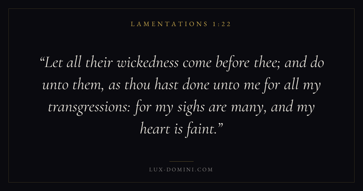 Let all their wickedness come before thee; and do unto them, as thou hast done unto me for all my transgressions: for my sighs are many, and my heart is faint.