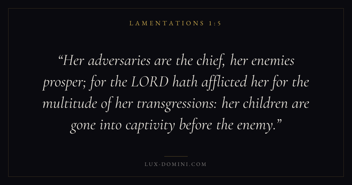 Her adversaries are the chief, her enemies prosper; for the LORD hath afflicted her for the multitude of her transgressions: her children are gone into captivity before the enemy.
