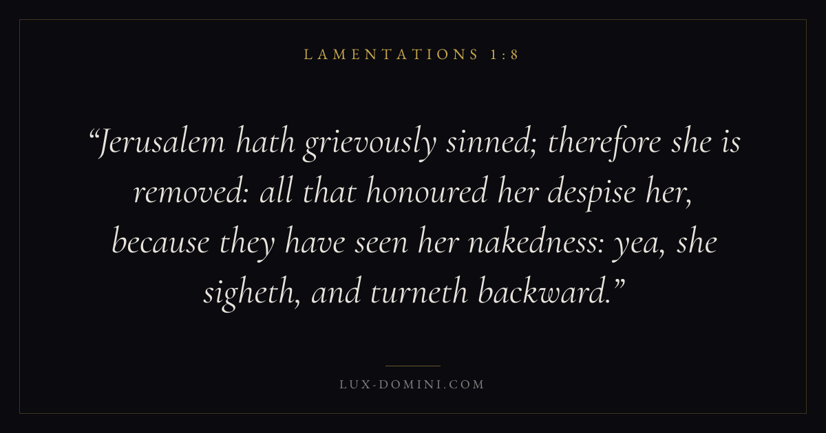 Jerusalem hath grievously sinned; therefore she is removed: all that honoured her despise her, because they have seen her nakedness: yea, she sigheth, and turneth backward.