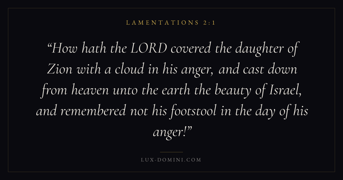 How hath the LORD covered the daughter of Zion with a cloud in his anger, and cast down from heaven unto the earth the beauty of Israel, and remembered not his footstool in the day of his anger!