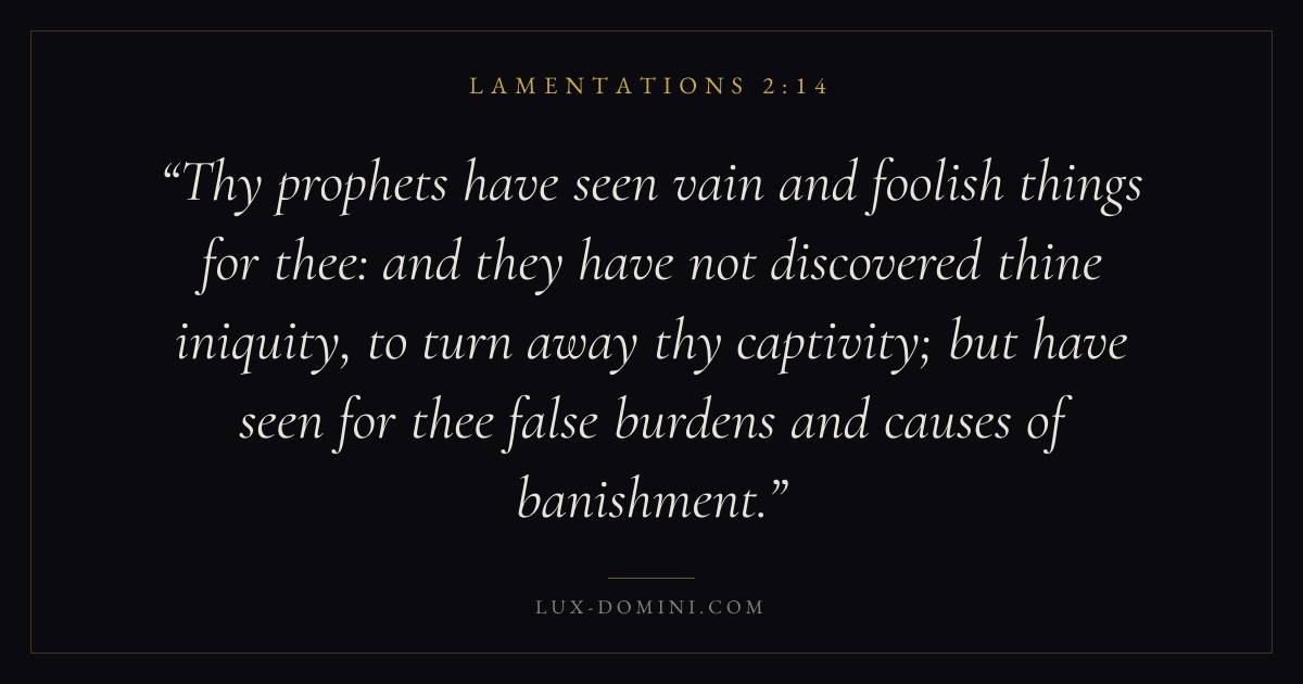 Thy prophets have seen vain and foolish things for thee: and they have not discovered thine iniquity, to turn away thy captivity; but have seen for thee false burdens and causes of banishment.