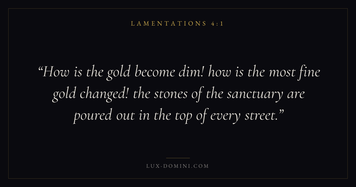 How is the gold become dim! how is the most fine gold changed! the stones of the sanctuary are poured out in the top of every street.
