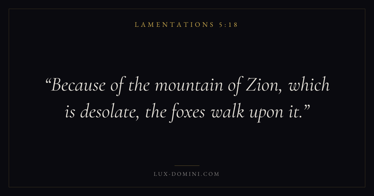 Because of the mountain of Zion, which is desolate, the foxes walk upon it.