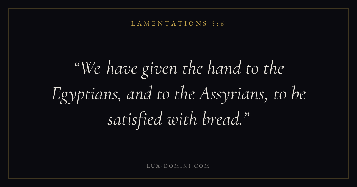 We have given the hand to the Egyptians, and to the Assyrians, to be satisfied with bread.