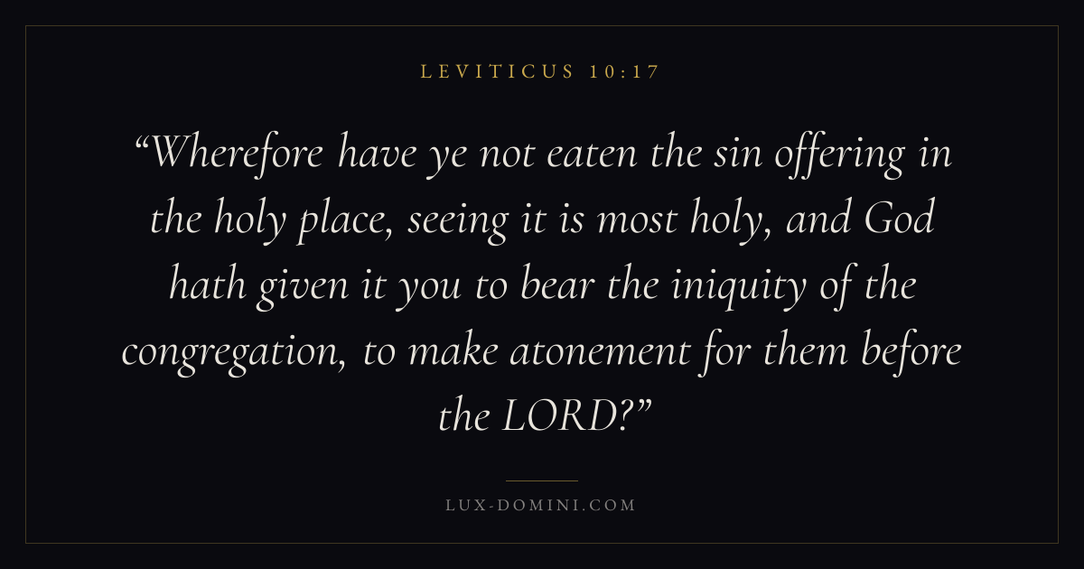 Wherefore have ye not eaten the sin offering in the holy place, seeing it is most holy, and God hath given it you to bear the iniquity of the congregation, to make atonement for them before the LORD?