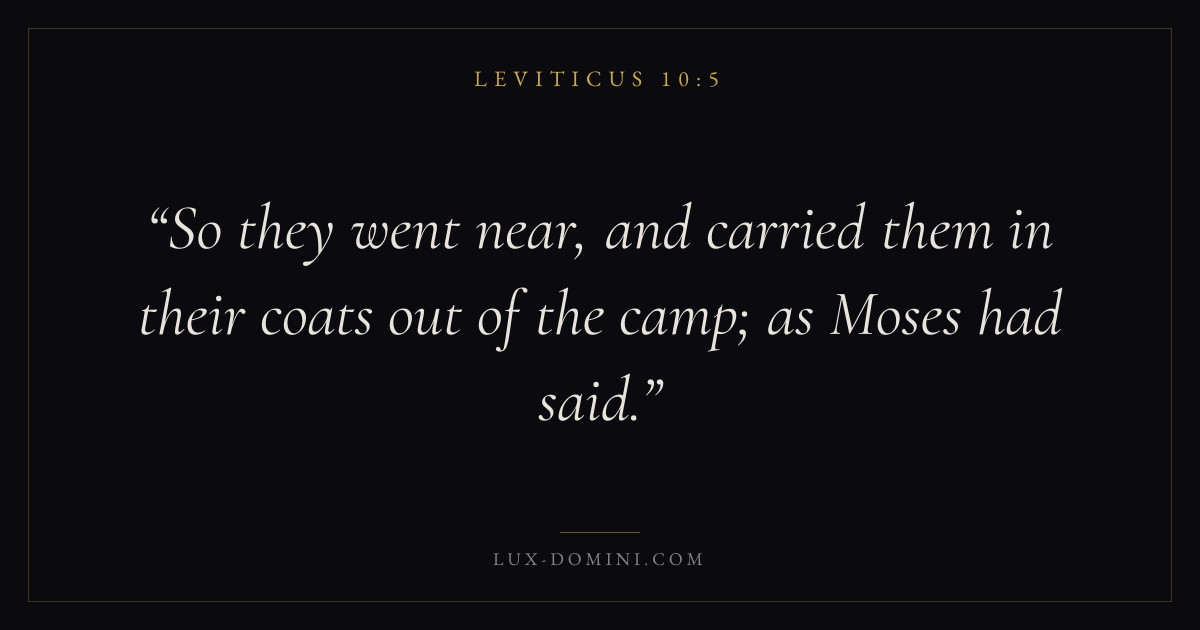 So they went near, and carried them in their coats out of the camp; as Moses had said.