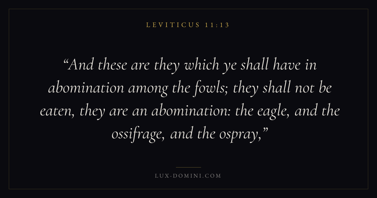 And these are they which ye shall have in abomination among the fowls; they shall not be eaten, they are an abomination: the eagle, and the ossifrage, and the ospray,