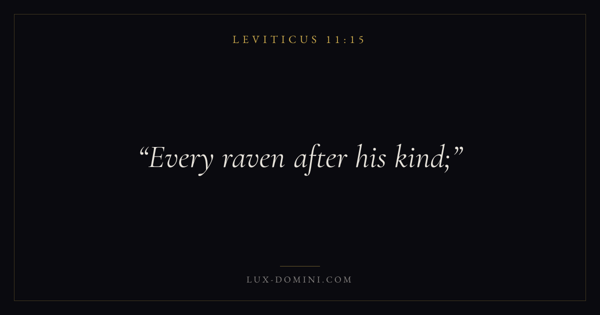 Books / Leviticus / Chapter 11 / Verse 15 ← Leviticus 11:14 Leviticus 11:15 Leviticus 11:16 → Every raven after his kind; Download verse card Share on Twitter Share on Facebook Pin it ✦ Key themes HolinessAtonementPriesthoodSacrifice Read with Leviticus 11:13Leviticus 11:14 ✦ Leviticus Chapter 11 verses V. 1 V. 2 V. 3 V. 4 V. 5 V. 6 V. 7 V. 8 V. 9 V. 10 V. 11 V. 12 V. 13 V. 14 V. 15 V. 16 V. 17 V. 18 V. 19 V. 20 V. 21 V. 22 V. 23 V. 24 V. 25 V. 26 V. 27 V. 28 V. 29 V. 30 V. 31 V. 32 V. 33 V. 34 V. 35 V. 36 V. 37 V. 38 V. 39 V. 40 V. 41 V. 42 V. 43 V. 44 V. 45 V. 46 V. 47