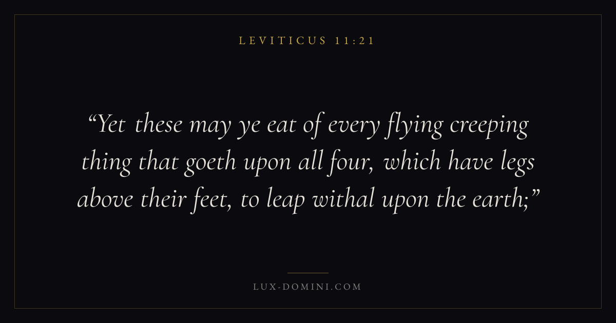 Yet these may ye eat of every flying creeping thing that goeth upon all four, which have legs above their feet, to leap withal upon the earth;