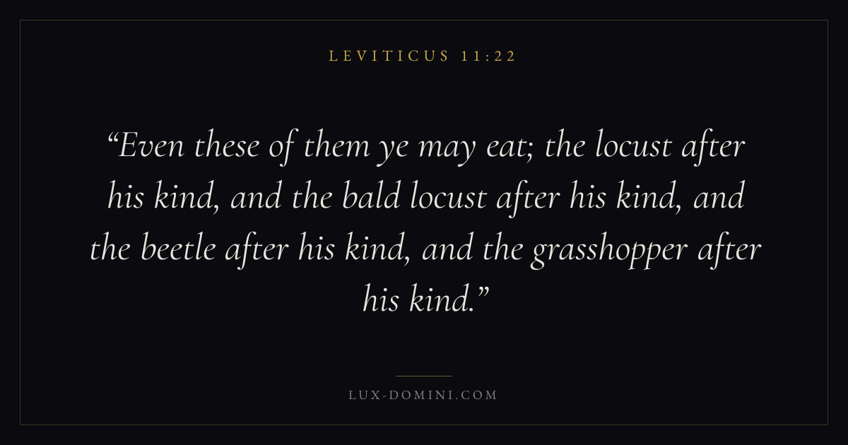 Even these of them ye may eat; the locust after his kind, and the bald locust after his kind, and the beetle after his kind, and the grasshopper after his kind.