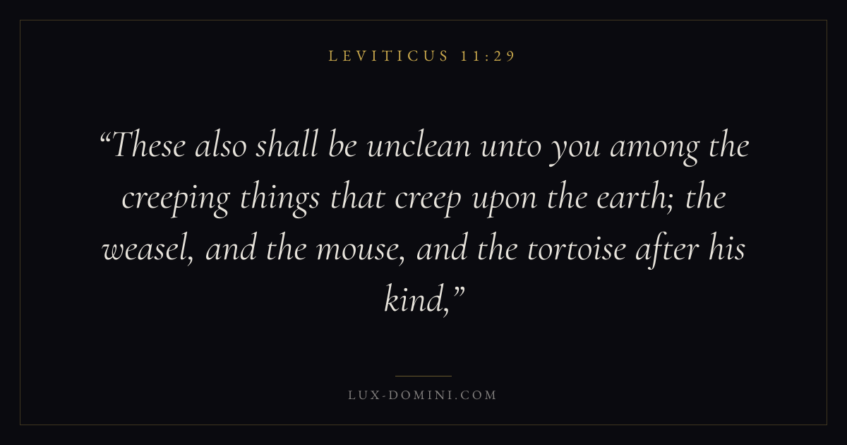 These also shall be unclean unto you among the creeping things that creep upon the earth; the weasel, and the mouse, and the tortoise after his kind,