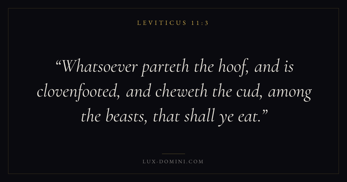 Whatsoever parteth the hoof, and is clovenfooted, and cheweth the cud, among the beasts, that shall ye eat.