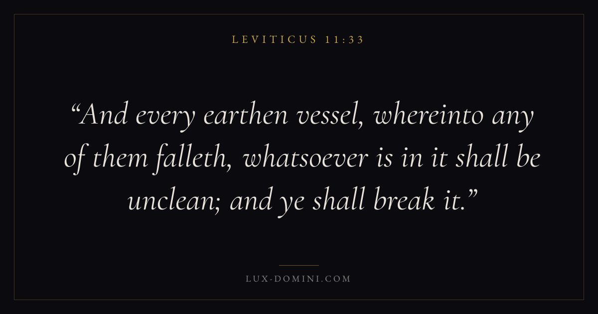 And every earthen vessel, whereinto any of them falleth, whatsoever is in it shall be unclean; and ye shall break it.