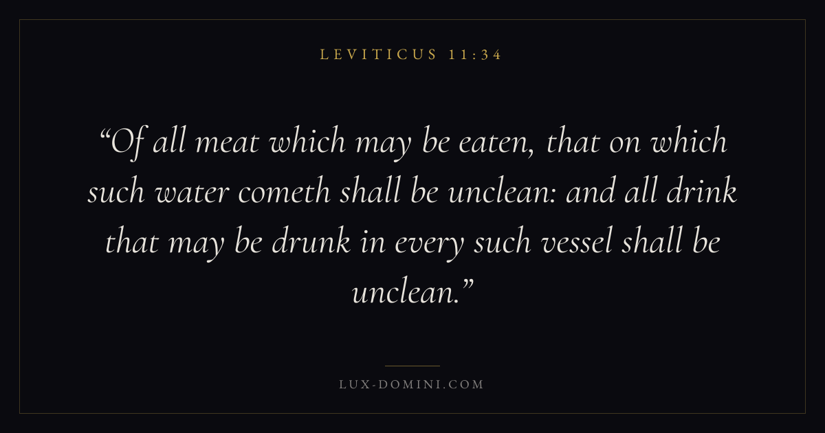 Of all meat which may be eaten, that on which such water cometh shall be unclean: and all drink that may be drunk in every such vessel shall be unclean.