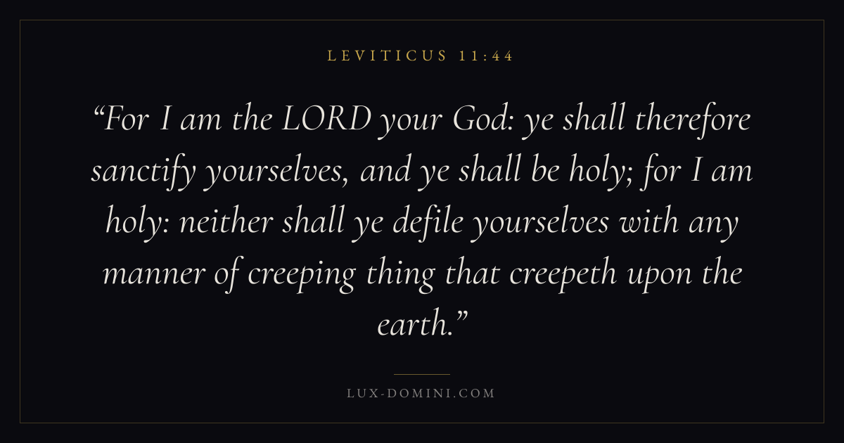 For I am the LORD your God: ye shall therefore sanctify yourselves, and ye shall be holy; for I am holy: neither shall ye defile yourselves with any manner of creeping thing that creepeth upon the earth.
