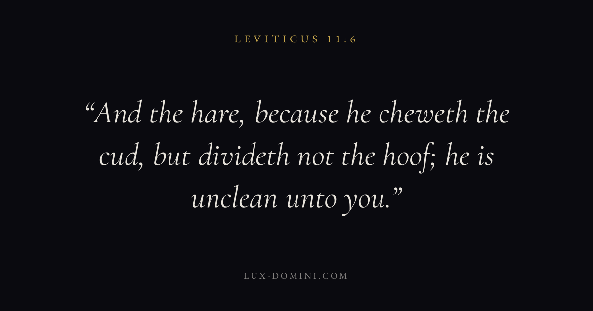 And the hare, because he cheweth the cud, but divideth not the hoof; he is unclean unto you.