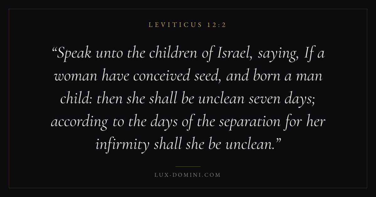 Speak unto the children of Israel, saying, If a woman have conceived seed, and born a man child: then she shall be unclean seven days; according to the days of the separation for her infirmity shall she be unclean.