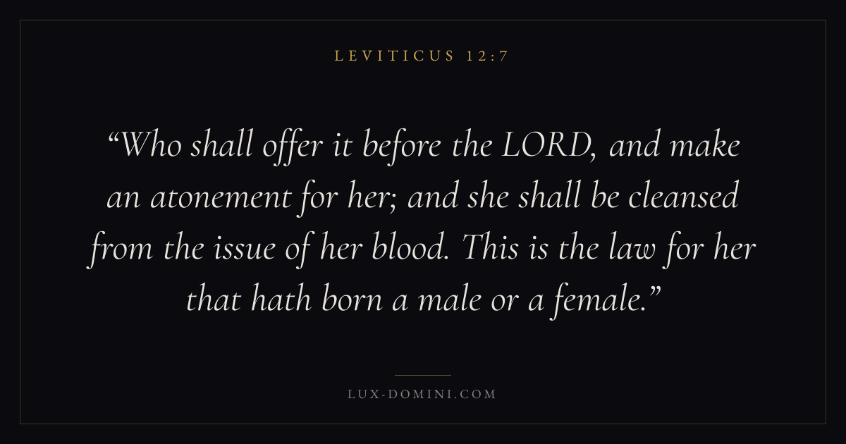 Who shall offer it before the LORD, and make an atonement for her; and she shall be cleansed from the issue of her blood. This is the law for her that hath born a male or a female.