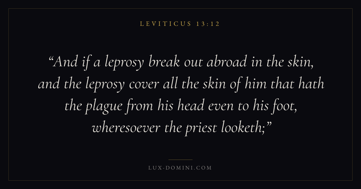 And if a leprosy break out abroad in the skin, and the leprosy cover all the skin of him that hath the plague from his head even to his foot, wheresoever the priest looketh;