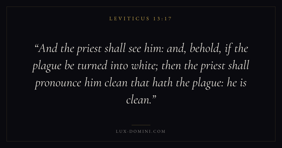 And the priest shall see him: and, behold, if the plague be turned into white; then the priest shall pronounce him clean that hath the plague: he is clean.
