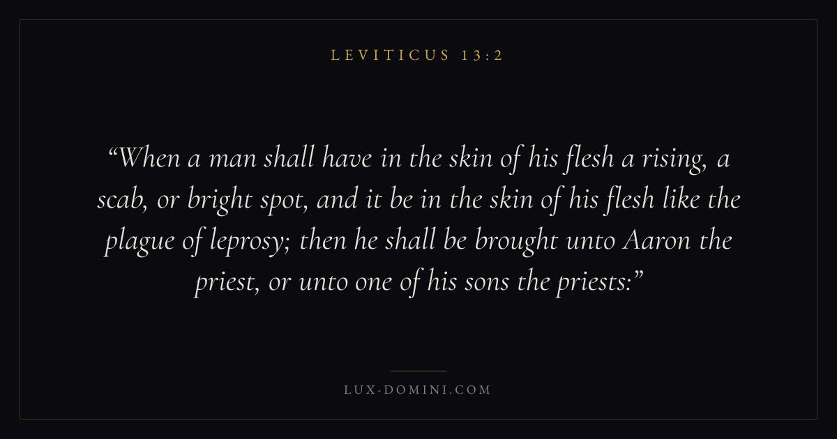 When a man shall have in the skin of his flesh a rising, a scab, or bright spot, and it be in the skin of his flesh like the plague of leprosy; then he shall be brought unto Aaron the priest, or unto one of his sons the priests: