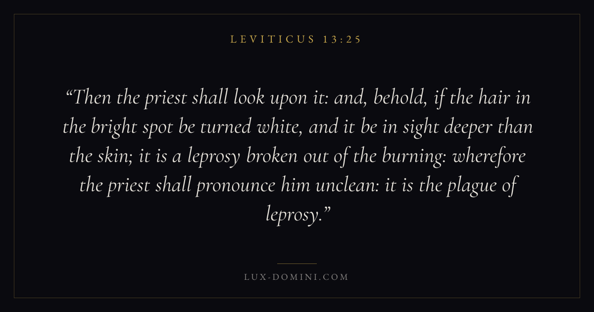 Then the priest shall look upon it: and, behold, if the hair in the bright spot be turned white, and it be in sight deeper than the skin; it is a leprosy broken out of the burning: wherefore the priest shall pronounce him unclean: it is the plague of leprosy.