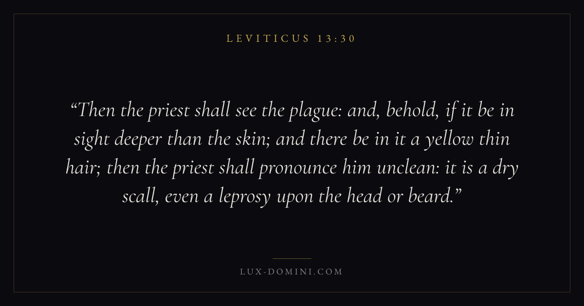 Then the priest shall see the plague: and, behold, if it be in sight deeper than the skin; and there be in it a yellow thin hair; then the priest shall pronounce him unclean: it is a dry scall, even a leprosy upon the head or beard.