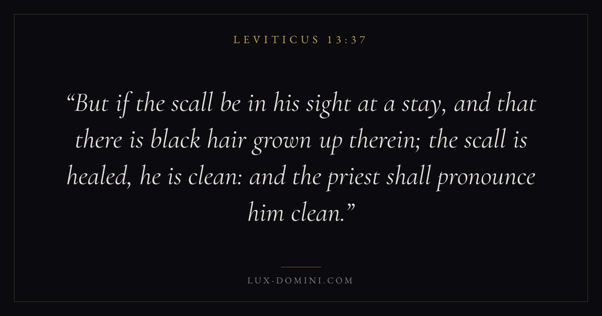 But if the scall be in his sight at a stay, and that there is black hair grown up therein; the scall is healed, he is clean: and the priest shall pronounce him clean.