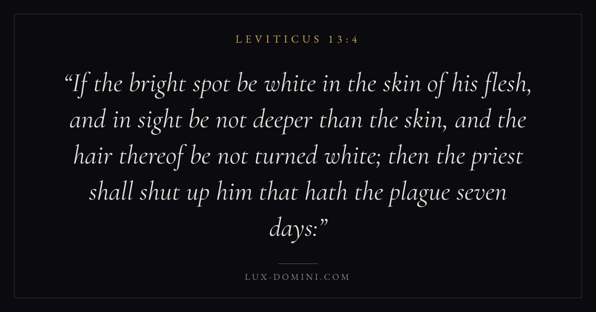 If the bright spot be white in the skin of his flesh, and in sight be not deeper than the skin, and the hair thereof be not turned white; then the priest shall shut up him that hath the plague seven days: