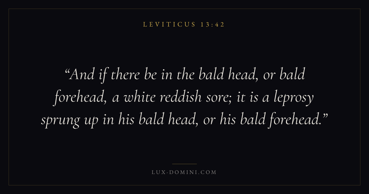 And if there be in the bald head, or bald forehead, a white reddish sore; it is a leprosy sprung up in his bald head, or his bald forehead.