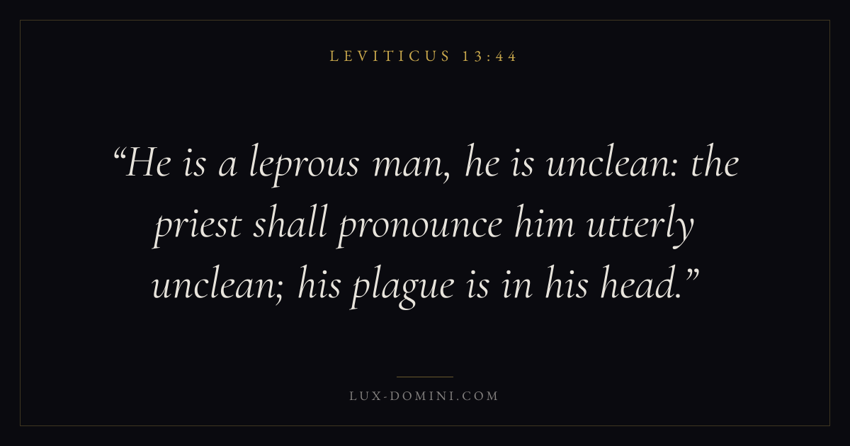 He is a leprous man, he is unclean: the priest shall pronounce him utterly unclean; his plague is in his head.