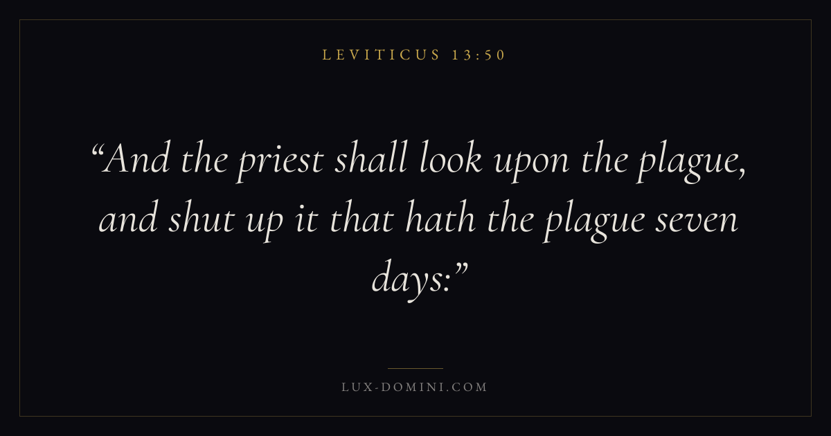 And the priest shall look upon the plague, and shut up it that hath the plague seven days: