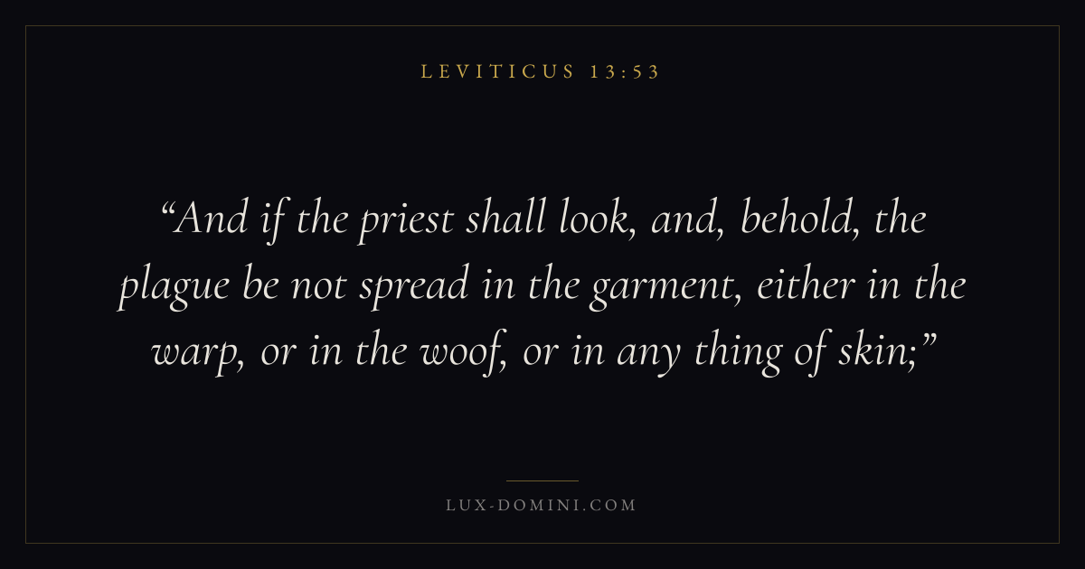 And if the priest shall look, and, behold, the plague be not spread in the garment, either in the warp, or in the woof, or in any thing of skin;
