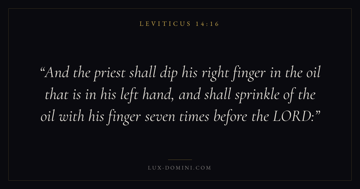 And the priest shall dip his right finger in the oil that is in his left hand, and shall sprinkle of the oil with his finger seven times before the LORD:
