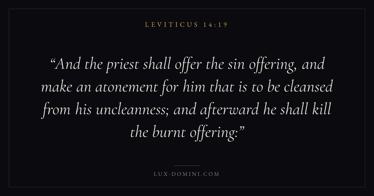 And the priest shall offer the sin offering, and make an atonement for him that is to be cleansed from his uncleanness; and afterward he shall kill the burnt offering: