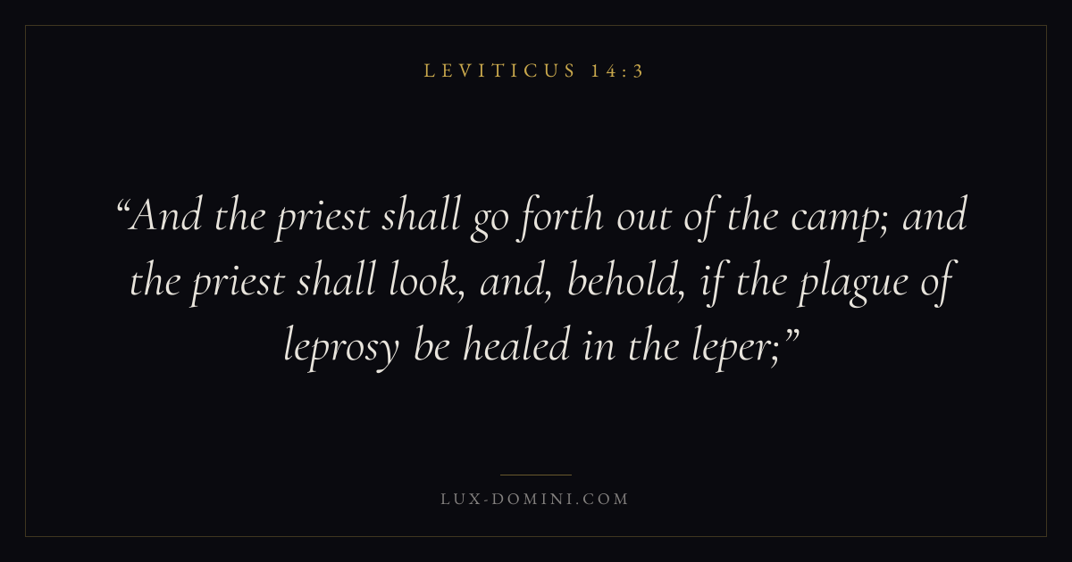 And the priest shall go forth out of the camp; and the priest shall look, and, behold, if the plague of leprosy be healed in the leper;