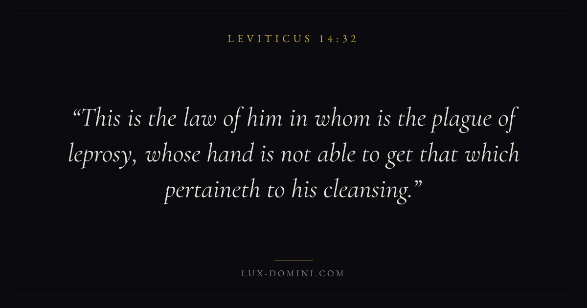 This is the law of him in whom is the plague of leprosy, whose hand is not able to get that which pertaineth to his cleansing.