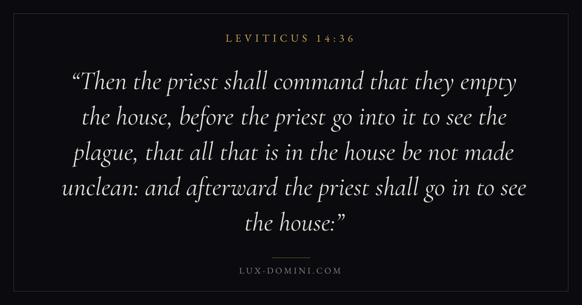 Then the priest shall command that they empty the house, before the priest go into it to see the plague, that all that is in the house be not made unclean: and afterward the priest shall go in to see the house: